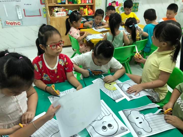 Lớp Lá: kỹ năng cầm kéo và cắt theo đường thẳng, đường cong